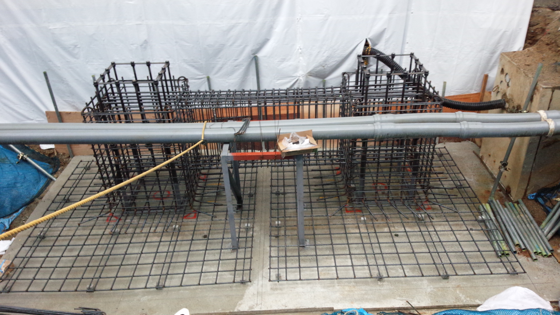 エネゲートの渡り廊下の基礎です。配管がいっぱいあって大変でした!